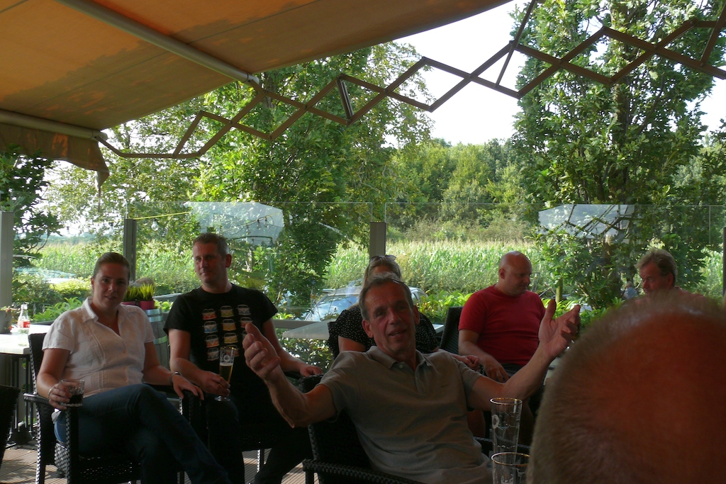 Zondag 15 augustus ging onze tweede georganiseerde rit van start. Verzameld werd bij het NH Hotel op Randwyck waar we onze bolides mooi voor het hotel konden parkeren. Na het in ontvangst nemen van de routebeschrijving en enige mondelinge informatie door Toine, konden we vertrekken. Het werd een mooie, zonnige rit door het Limburgse land, met de lunchstop in Wittem. Daarna heerlijk ontspannen rijdend naar het eindpunt brasserie – hotel De Plank. Het werd hier weer een gezellige boel! Trouwens, er was ook een wedstrijdelement d.m.v. een aantal vragen in de rit ingebouwd. Belinda en Roger gingen er met de eerste prijs vandoor.